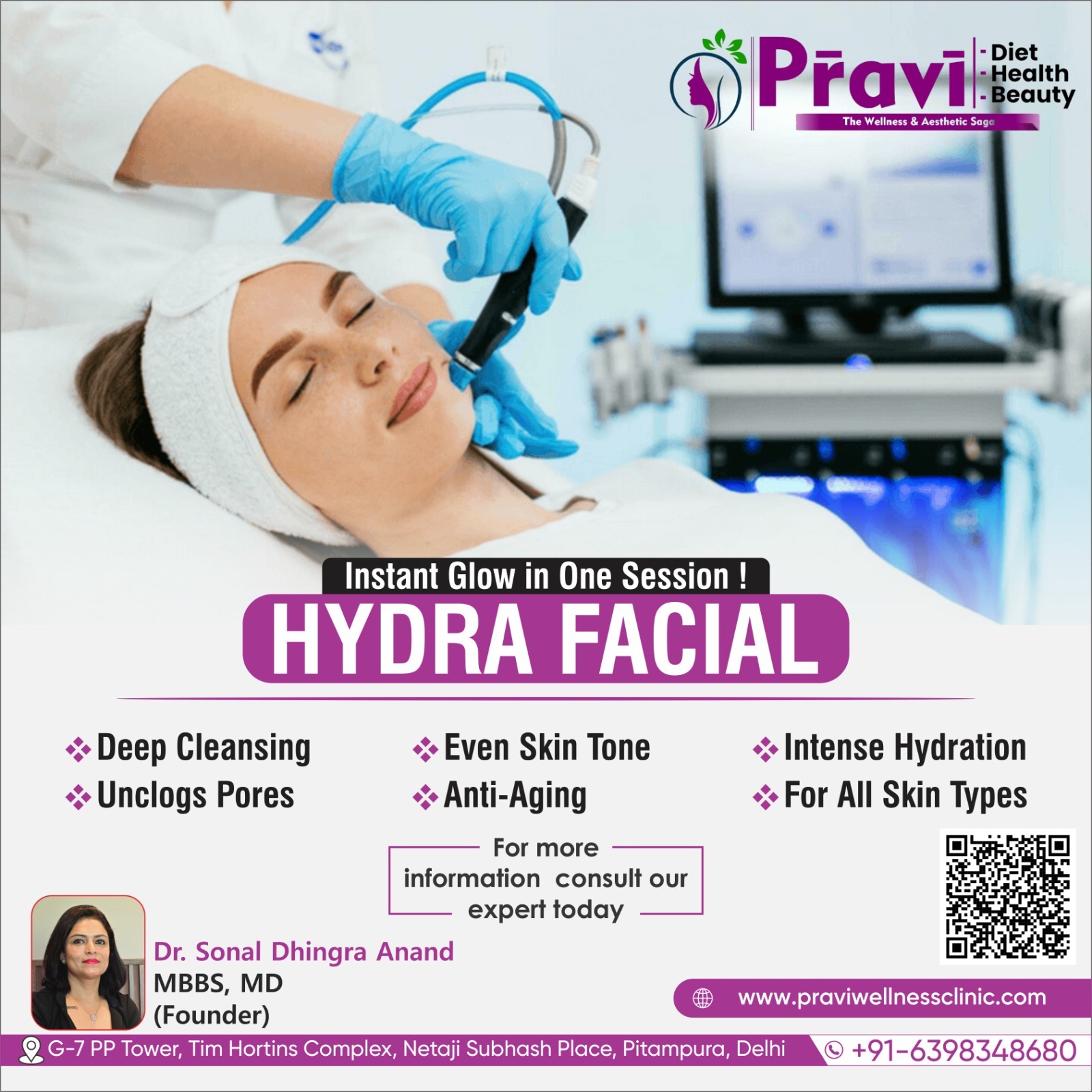 Book your HydraFacial session at Pravi Wellness Clinic Beauty And Wellness Saga today and experience the deep hydration and glow your skin deserves.